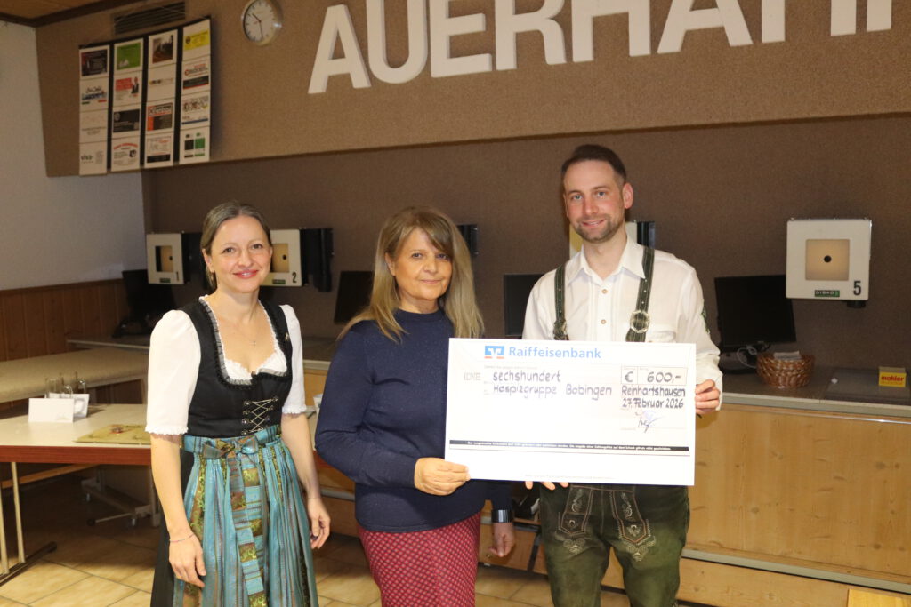 Zum Abschluss der Veranstaltung stand noch ein besonderer Punkt des Abends unter Wünsche und Anträge auf der Agenda. Fast schon traditionell spenden die Auerhahnschützen die Einnahmen aus dem Weihnachtschießen an gemeinnützige Zwecke und runden diesen Betrag auch großzügig auf. Auch in diesem Jahr konnte wieder ein neuer Besucherrekord am Schießen verzeichnet werden. Dies liegt mit Sicherheit auch an den hochwertigen Preisen aber eben auch am Gesamtpaket der Veranstaltung. Und so konnten 1200€ an Spendengeldern bereitgestellt werden. Diese wurden je zur Hälfte an die Hospizgruppe Bobingen und die Michael Wagner Stiftung Kinderlachen übergeben. Die 1. Vorsitzende der Hospizgruppe, Mirela Wollner, nahm den Spendenscheck persönlich auf der Hauptversammlung entgegen und berichtete der Versammlung über die wertvolle Arbeit der Gruppe, die auch überraschend neue Wege für das Thema „Abschied“ gehen. Die Versammlung würdigte das Engagement von Fr. Wollner und ihrer Gruppe mit einem langen Beifall.
